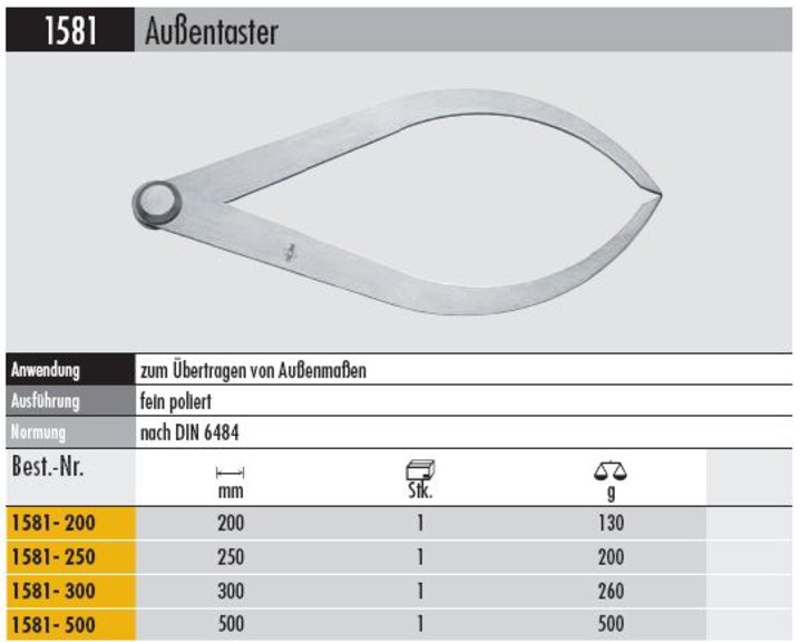 Produktinformationen "Außentaster 1581 - 200 DIN 6484 fein poliert"