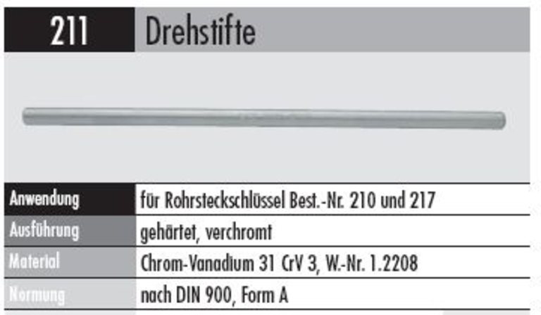 Produktinformationen "Drehstift 211-20 630 mm für Rohrsteckschlüssel"