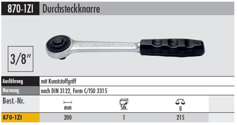 Produktinformationen "Durchsteckknarre - 870-1ZI 3/8 " Vierkantantrieb"