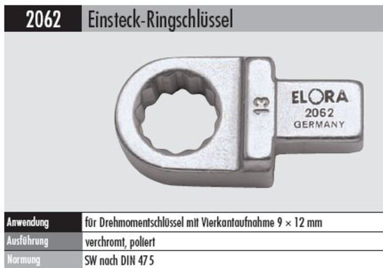 Produktinformationen "Einsteck-Ringschlüssel 2062-19MM Aufnahme 9 x 12 mm für Drehmomentschlüssel"
