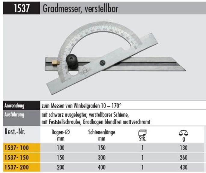 Produktinformationen "Gradmesser verstellbar 1537 -100 zum Messen von 0 - 170 °"