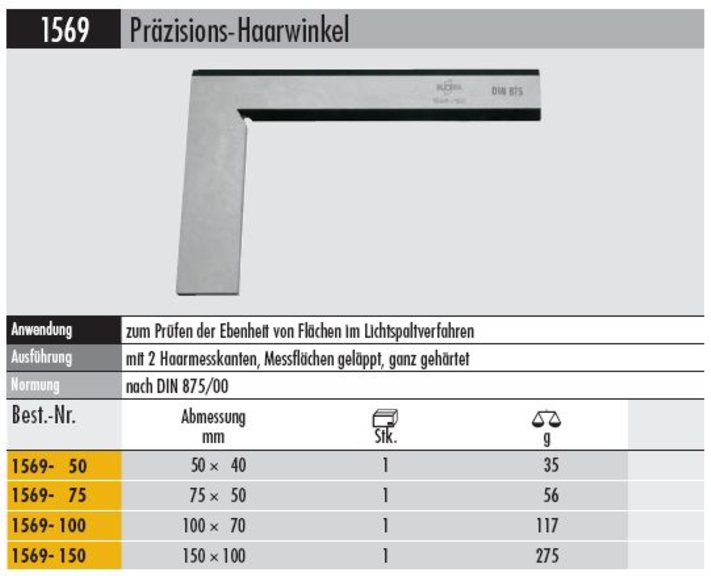 Ausführung: mit 2 Haarmeßkanten, Meßflächen geläppt, ganz gehärtet,