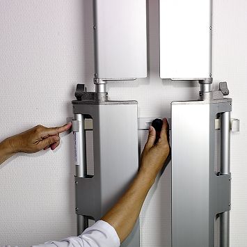Halterung für Schaufeltrage. Aluminium-Einstellwinkel mit Polsterung für eine einfache Befestigung der Schaufeltrage im Fahrzeug oder an der Wand.