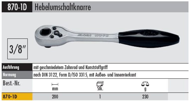 Produktinformationen "Hebelumschaltknarre - 870-1D 3/8 " Vierkantantrieb"