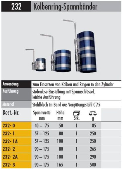 Produktinformationen "Kolbenring-Spannband 232- 1 leichte Ausführung Spannweite (Durchmesser): 57 - 125 mm/Höhe: 80 mm"