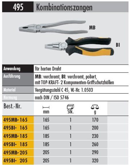 Produktinformationen "Kombi - Zange- 495 BI- 205 verchromt, mit Griffschutzhüllen"