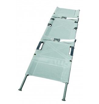 Krankentrage gemäß DIN EN 1865, 3x klappbar, mit 4 Gleitfüßen. Sehr kompakt, daher sehr gut zu verstauen und bequem zu tragen.- kleines Stau-/Packmaß