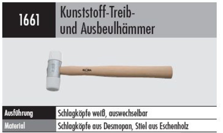Produktinformationen "Kunststoff-Treib- und Ausbeulhammer Schlagköpfe weiß, auswechselbar"