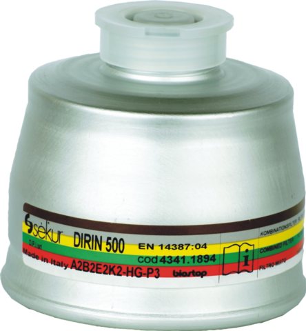 Produktinformationen "Mehrbereichs-Kombi-Filter DIRIN 500 A2B2E2K2-Hg-P3R D* Schutz gegen organische Gase und Dämpfe mit einem Siedepunkt von >65°C"