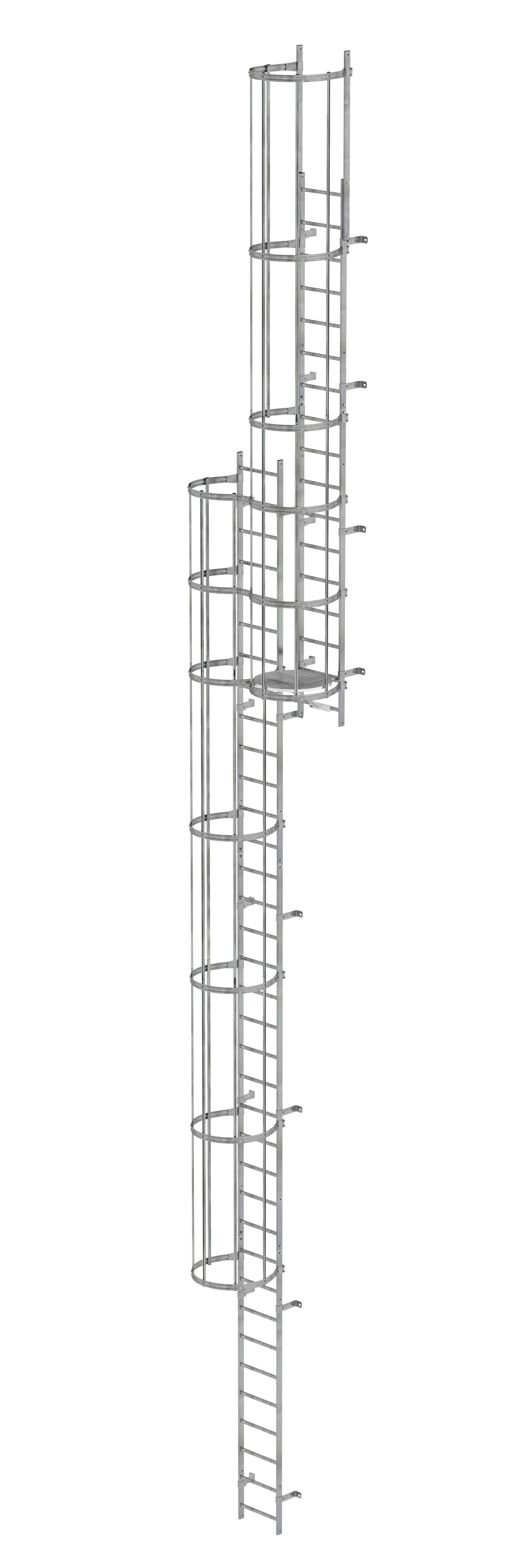 Produktinformationen "Mehrzügige Steigleiter mit Rückenschutz (Bau) Stahl verzinkt 13,80m "