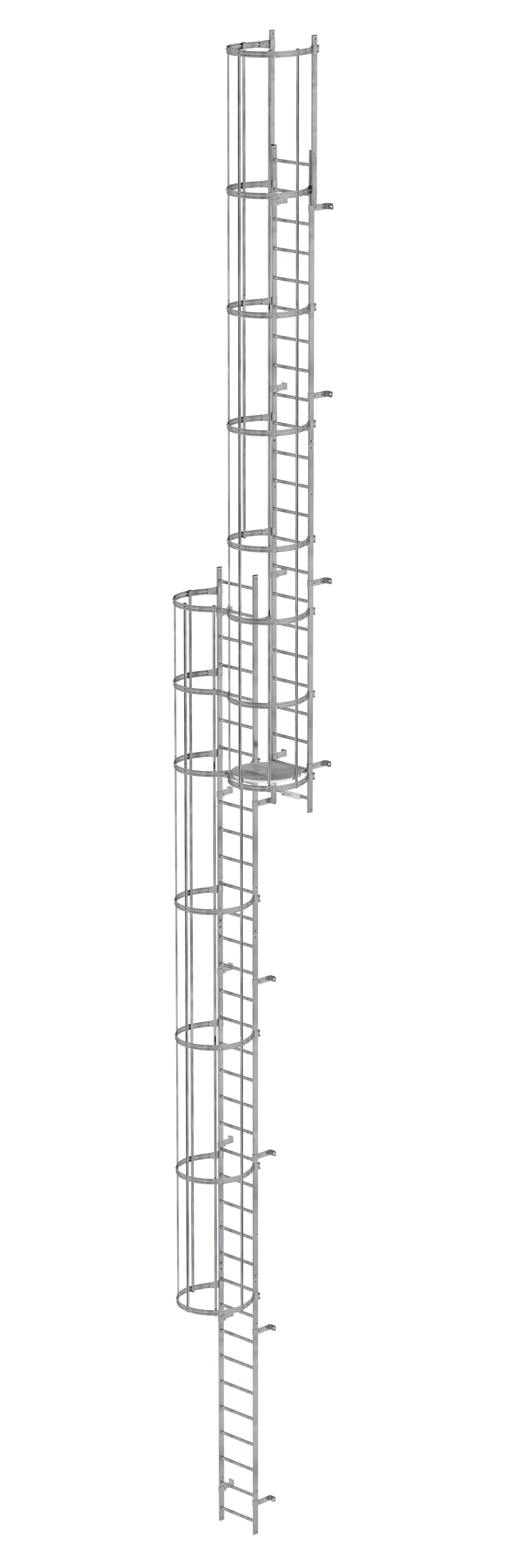 Produktinformationen "Mehrzügige Steigleiter mit Rückenschutz (Bau) Stahl verzinkt 15,48m "