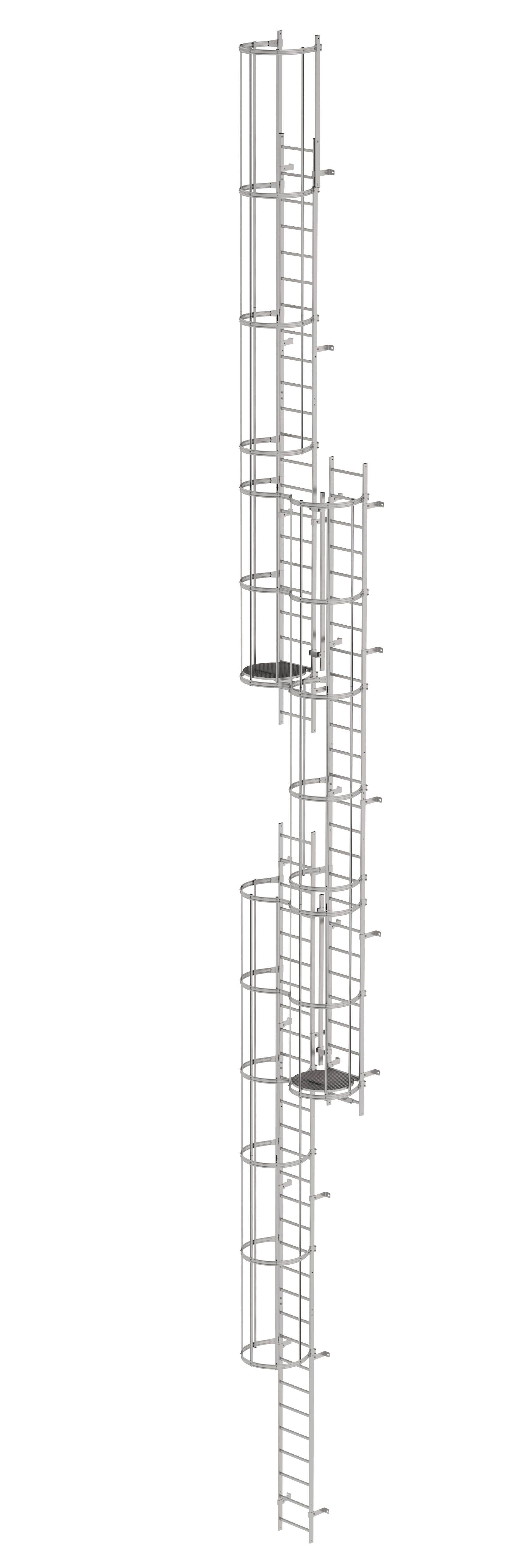 Produktinformationen "Mehrzügige Steigleiter mit Rückenschutz (Maschinen) Edelstahl 17,16m "