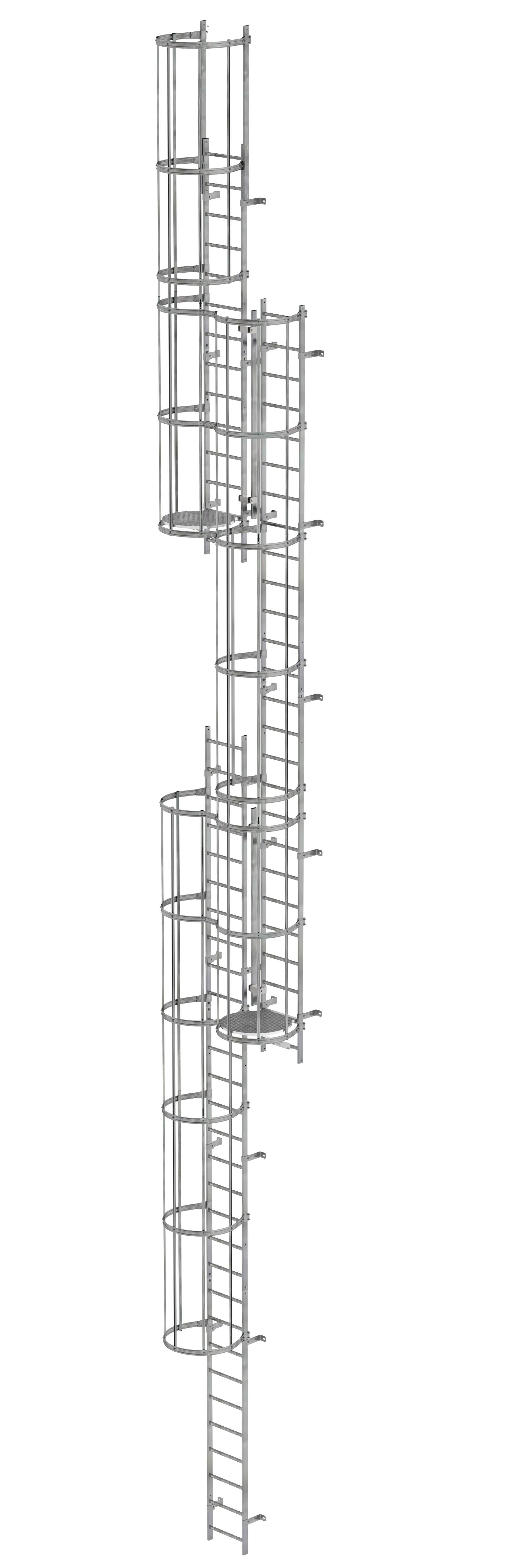 Produktinformationen "Mehrzügige Steigleiter mit Rückenschutz (Maschinen) Stahl verzinkt 15,20m "