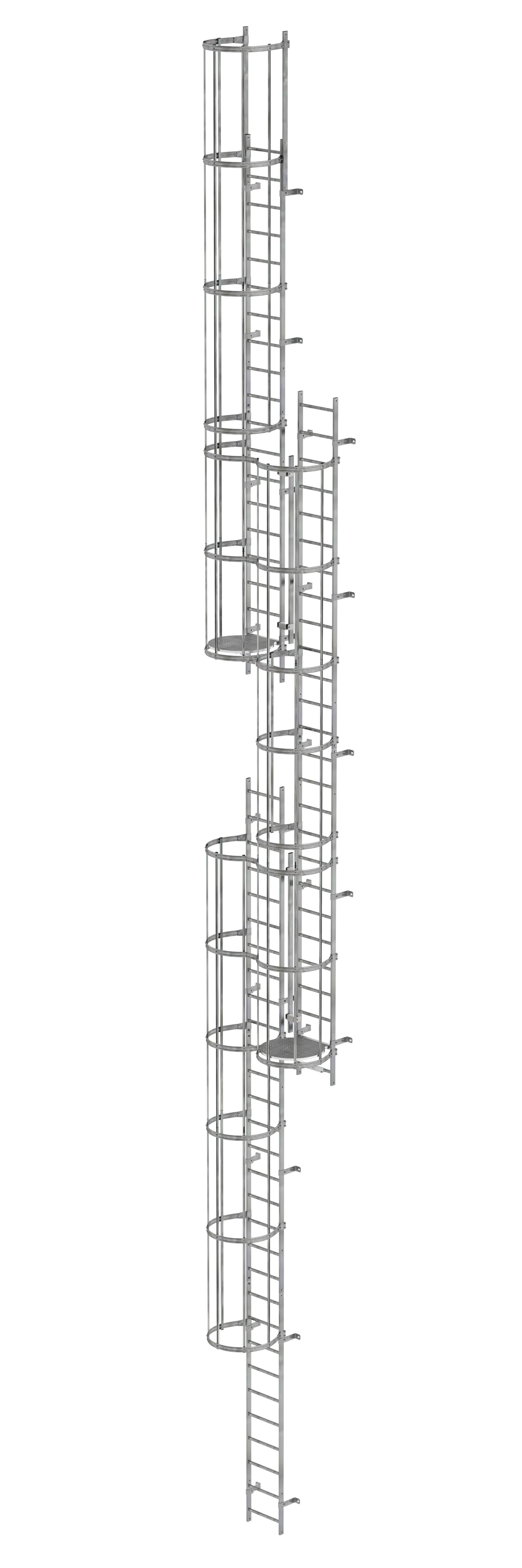 Produktinformationen "Mehrzügige Steigleiter mit Rückenschutz (Maschinen) Stahl verzinkt 16,32m "