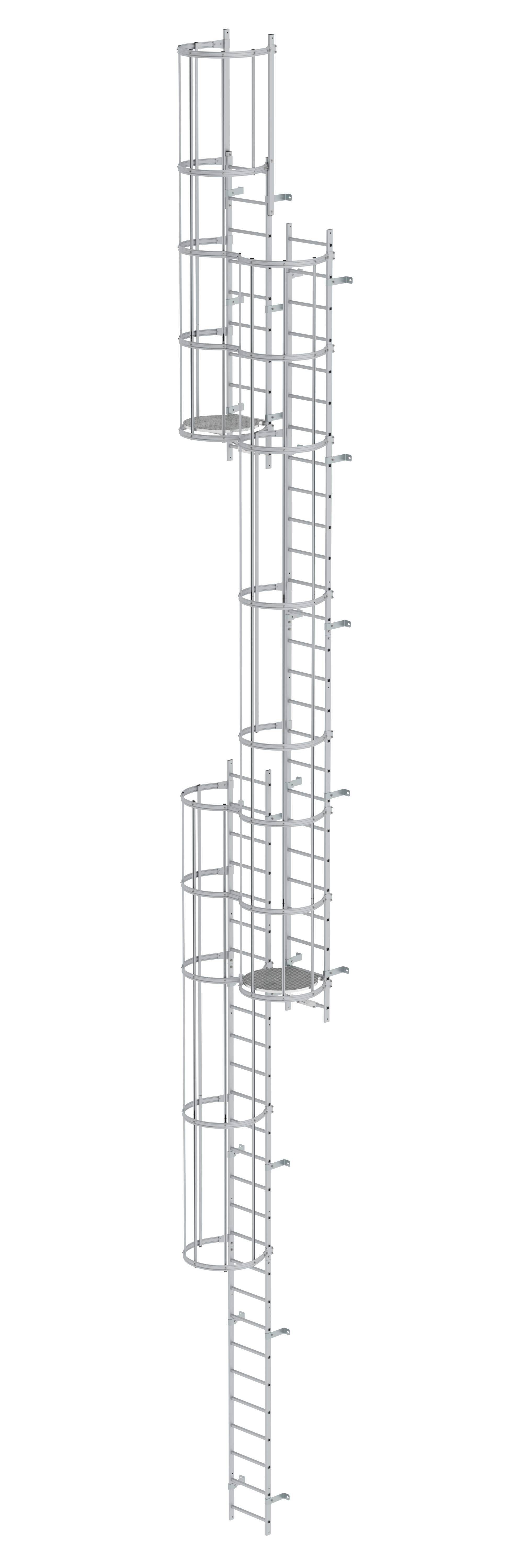 (über 10,0m Steighöhe) Steigleitern sind immer dann Ihre Steigtechniklösung, wenn Gebäude, Anlagen oder Maschinen einen dauerhaften Zugang erfordern. Steigleitern sind robust, langlebig, effizient und erlauben einen sicheren Auf- und Abstieg, auch bei großen Höhen Komfortable Podeste gestatten Ruhepausen und den einfachen Umstieg bei versetzt angebrachten Steigleitern. Ein umfangreiches Zubehörsortiment deckt die vielfältigsten Anforderungen ab, die die baulichen Gegebenheiten mitunter verlangen. Das optimierte Montagesystem der Günzburger Steigtechnik ermöglicht es jetzt, selbst komplexe, mehrzügige Anlagen mit bis zu 30 Prozent Zeitersparnis zu montieren. Eine neue und hochstabile Befestigungstechnik des wichtigen Rückenschutzes ist die moderne Antwort auf gestiegene Anforderungen in punkto Wirtschaftlichkeit. Steigleitern planen wir in enger Abstimmung mit dem Auftraggeber, je nach Einsatzort und -zweck. Denn gute Projektierung ist die halbe Steigtechniklösung.