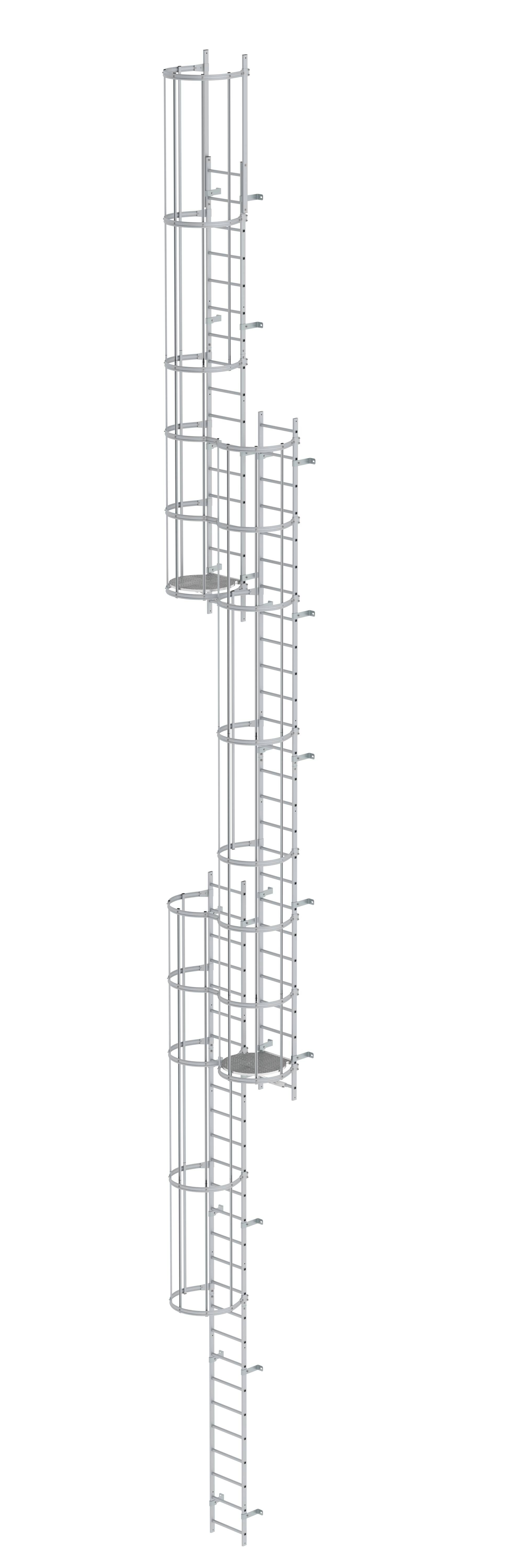 Produktinformationen "Mehrzügige Steigleiter mit Rückenschutz (Notleiter) Aluminium eloxiert 16,32m "