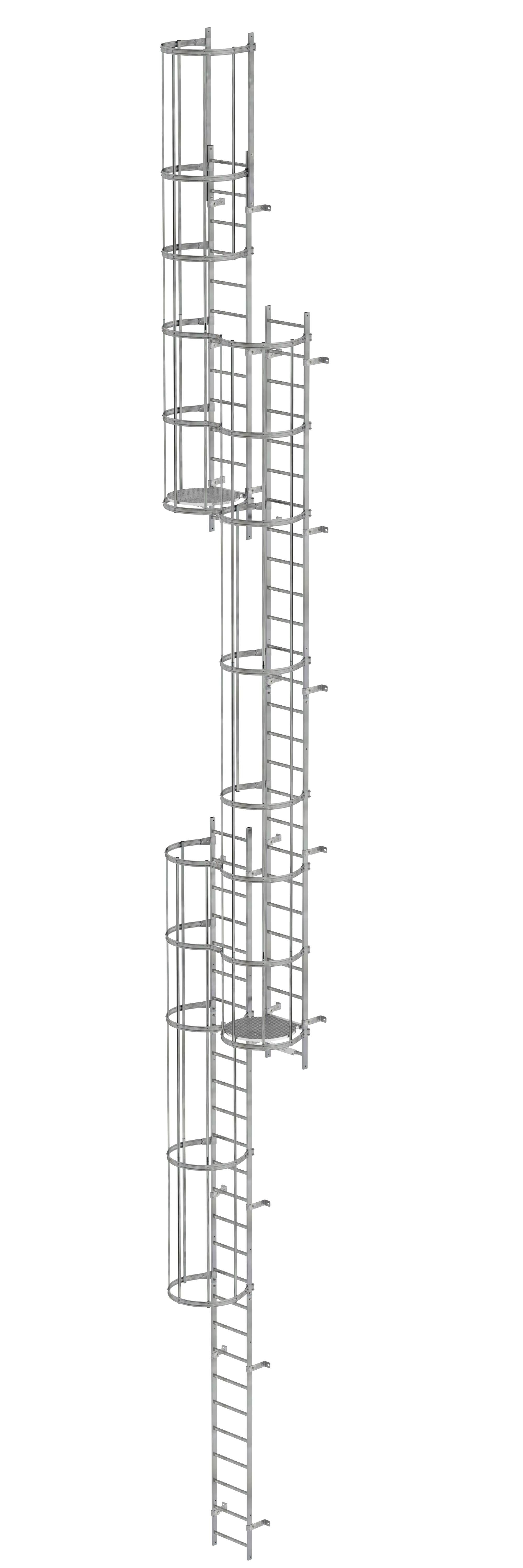 (über 10,0m Steighöhe) Steigleitern sind immer dann Ihre Steigtechniklösung, wenn Gebäude, Anlagen oder Maschinen einen dauerhaften Zugang erfordern. Steigleitern sind robust, langlebig, effizient und erlauben einen sicheren Auf- und Abstieg, auch bei großen Höhen Komfortable Podeste gestatten Ruhepausen und den einfachen Umstieg bei versetzt angebrachten Steigleitern. Ein umfangreiches Zubehörsortiment deckt die vielfältigsten Anforderungen ab, die die baulichen Gegebenheiten mitunter verlangen. Das optimierte Montagesystem der Günzburger Steigtechnik ermöglicht es jetzt, selbst komplexe, mehrzügige Anlagen mit bis zu 30 Prozent Zeitersparnis zu montieren. Eine neue und hochstabile Befestigungstechnik des wichtigen Rückenschutzes ist die moderne Antwort auf gestiegene Anforderungen in punkto Wirtschaftlichkeit. Steigleitern planen wir in enger Abstimmung mit dem Auftraggeber, je nach Einsatzort und -zweck. Denn gute Projektierung ist die halbe Steigtechniklösung.