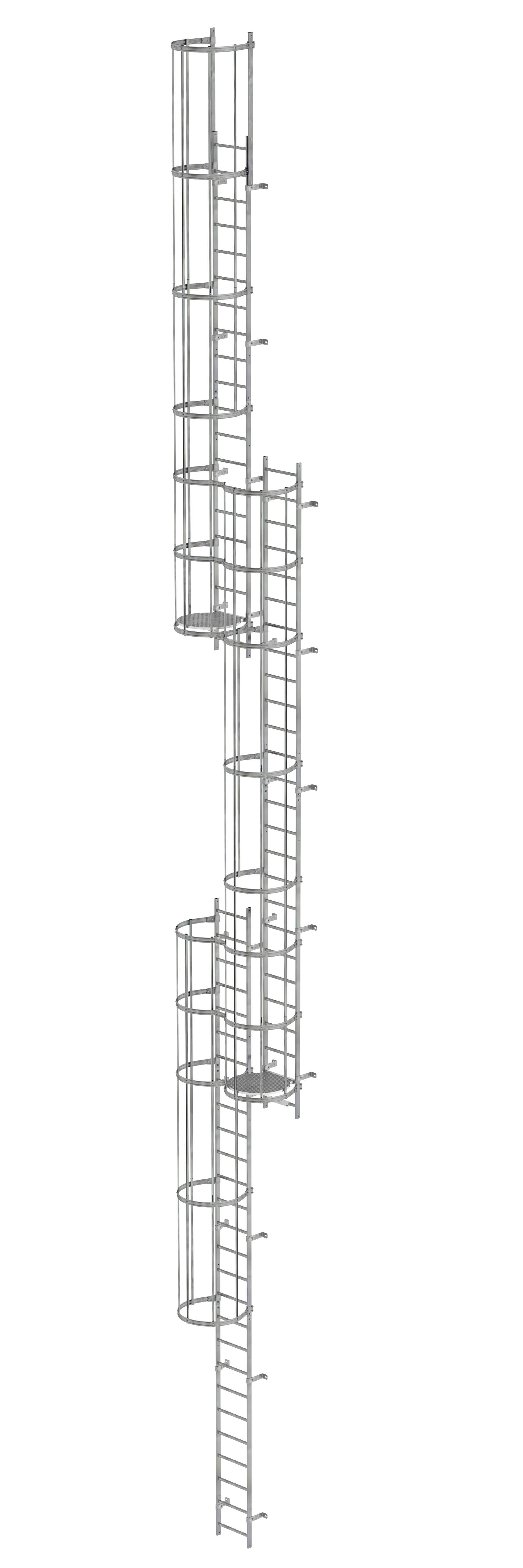 Produktinformationen "Mehrzügige Steigleiter mit Rückenschutz (Notleiter) Stahl verzinkt 17,16m "