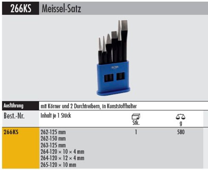 Produktinformationen "Meißel u. Körner Satz 266 KS mit Durchtreiber in Kunststoffhalter"