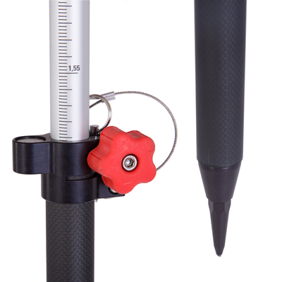 - Durch zusätzliche Arretierungsmöglichkeit werden schwere Prismen bzw. Antennen exakt auf Höhe gehalten - auch bei harten Aufsetzen des Stabes.