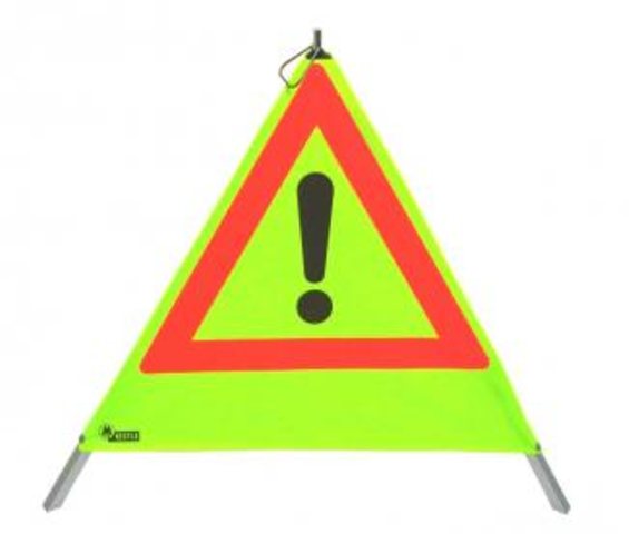 - Warnpyramide mit gelber Grundfarbe und rotem Dreieck oder retroreflektierend gelb mit leuchtrotem Dreieck.
