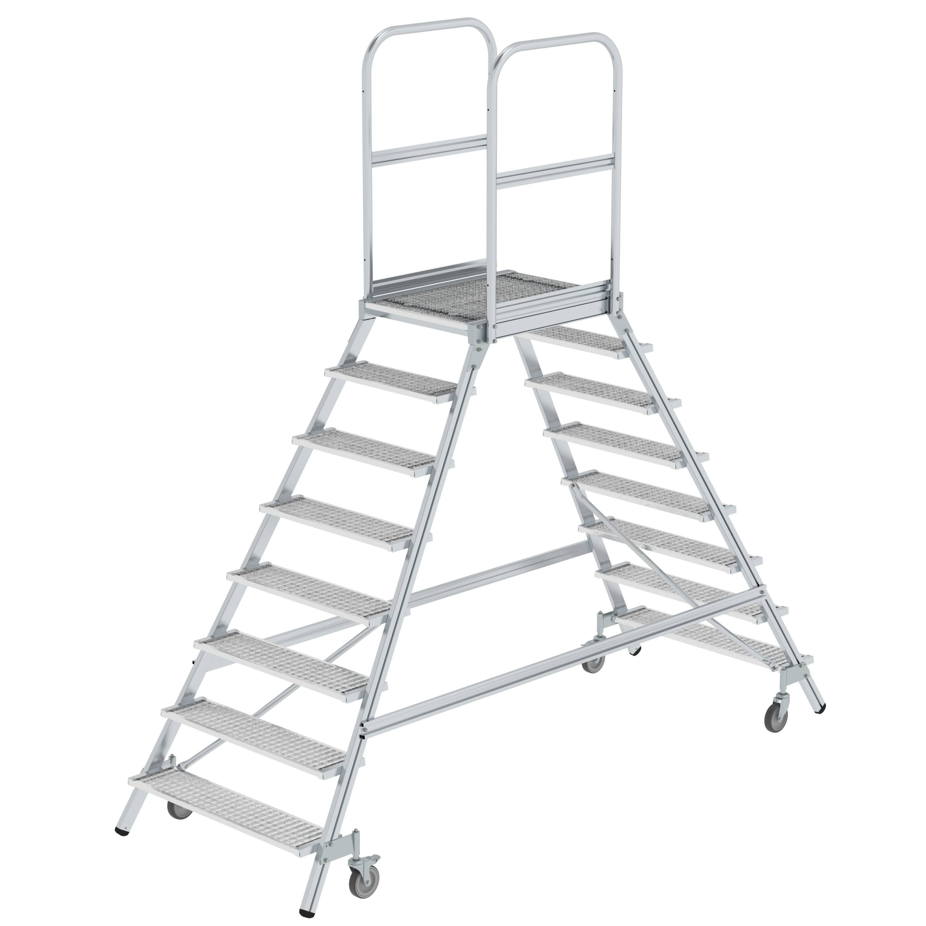 Aluminium-Podestleiter beidseitig begehbar: Stahl-Gitterrost