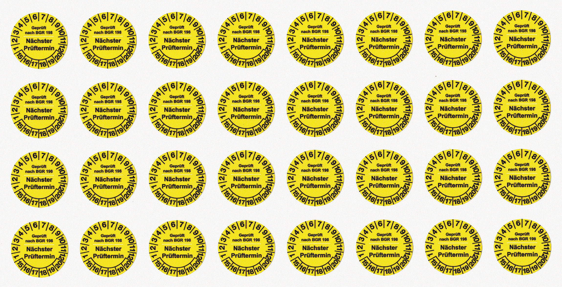 - Prüfplaketten für die jährliche Überprüfung von Produkten der Persönlichen Schutzausrüstung