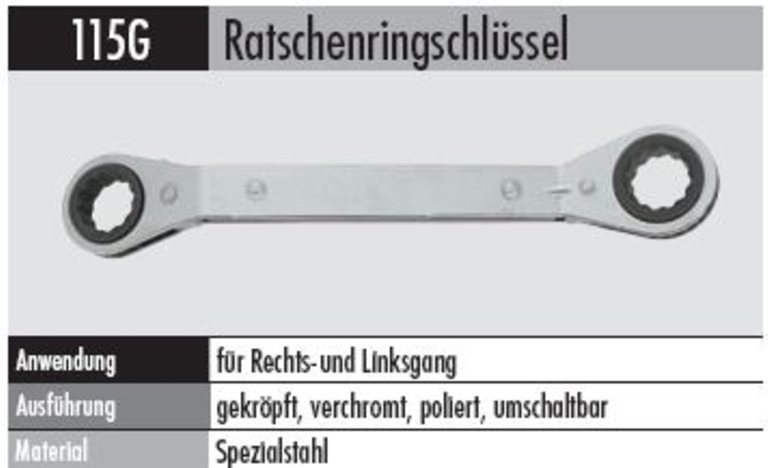 Produktinformationen "Ratschenringschlüssel- 115 G -21X22 mm gekröpft , für Rechts-und Linksgang"