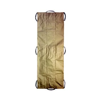 Besonders aufwendig verarbeitet, Tragegriffe mit Kunststoffschlauch verstärkt und mit Gurtband durchgehend über die ganze Länge und Breite des Rettungstuches vernäht. Die Gurte überkreuzen sich mehrfach, noch mehr Festigkeit und Stabilität wird erreicht. Längsseiten mit je drei Tragegriffen, an Kopf- und Fußende je ein Tragegriff. Materialqualität BAUMWOLLE: Baumwollsegeltuch, Farbe rohweiß, Flächengewicht 600 g/m2, Reißfestigkeit 1750/1400 N.