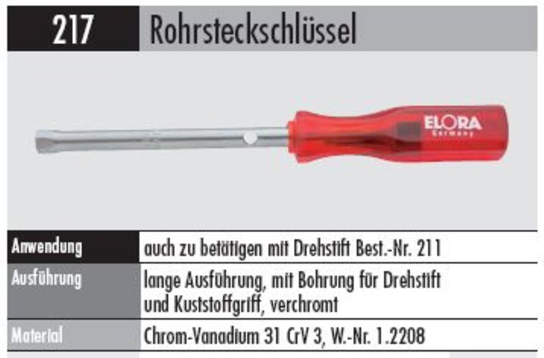 Produktinformationen "Rohrsteckschlüssel m. Griff 217-10 mm lange Ausführung mit Griff"