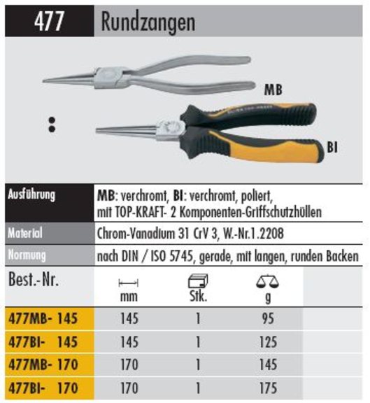 Produktinformationen "Rundzange 477 BI-145 verchromt, mit Griffschutzthüllen"
