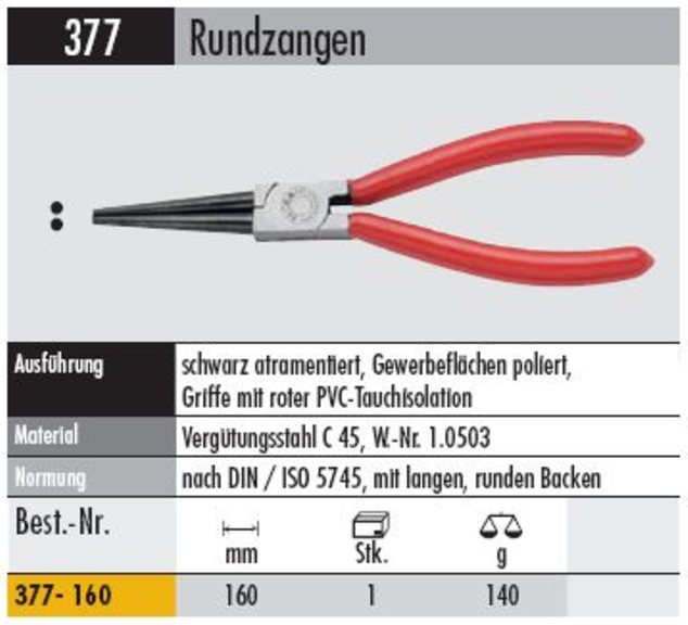 Produktinformationen "Rundzange profi377 - 160 Griff mit roter Tauchisolation"
