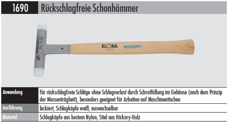 Produktinformationen "Schonhammer rückschlagfrei 1690- 70 MM Schlagköpfe weiß, auswechselbar"