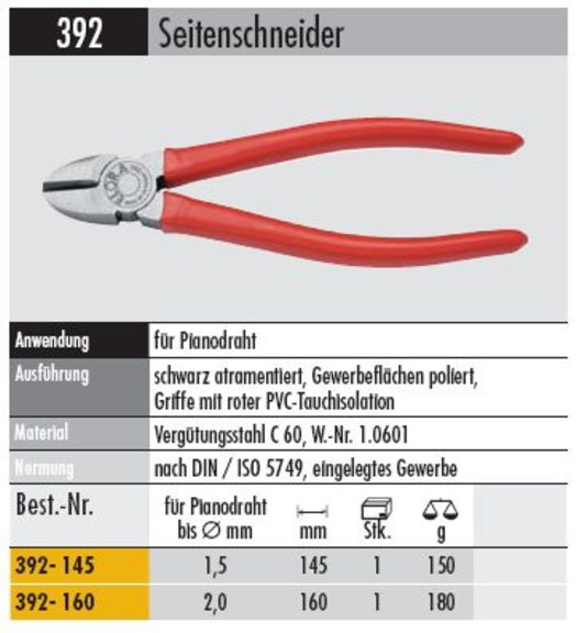 Produktinformationen "Seitenschneider 392 -145 AI Griff mit roter Tauchisolation"