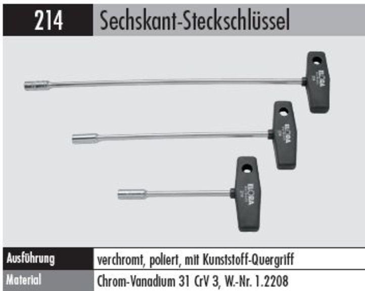 Produktinformationen "Steckschlüssel 6 ktg.m. Quergriff 214- 12 -350 mm verchromt mit Kunststoff-Quergriff"