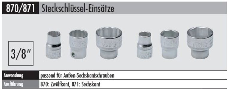 Normung: 3/8"-Antrieb nach DIN 3120/ISO 1174, handbetätigt, mit Kugelfangrille, Maße nach DIN 3124/ISO 2725