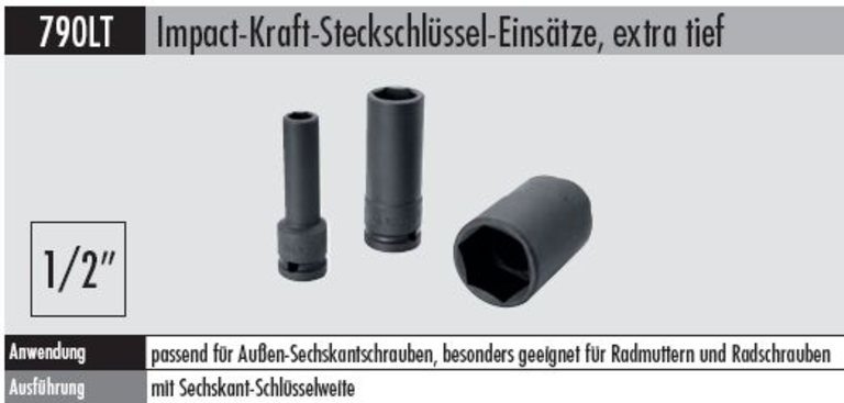Produktinformationen "Steckschlüssel-Einsatz Impact-Kraft 1/2" extra tief - 790 LT-20 mm für Außen-Sechskantschrauben"