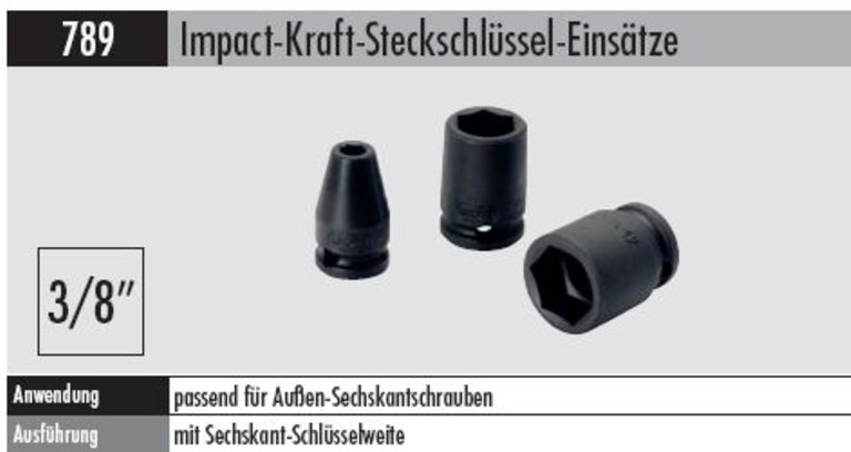Produktinformationen "Steckschlüssel-Einsatz Impact-Kraft - 789-12 mm 3/8 " 3/8 " Antrieb"