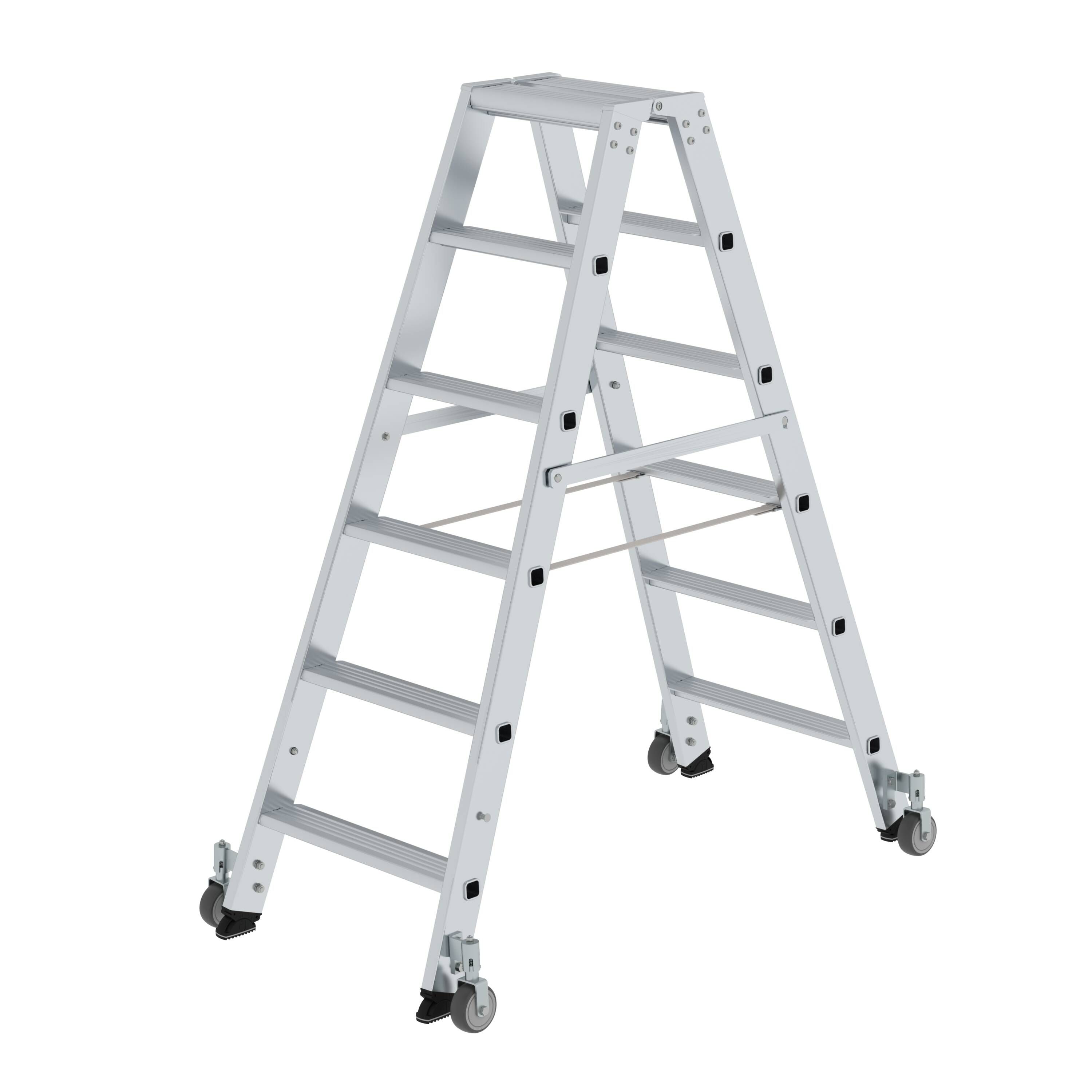 Aluminium-Stehleiter beidseitig begehbar mit Rollen