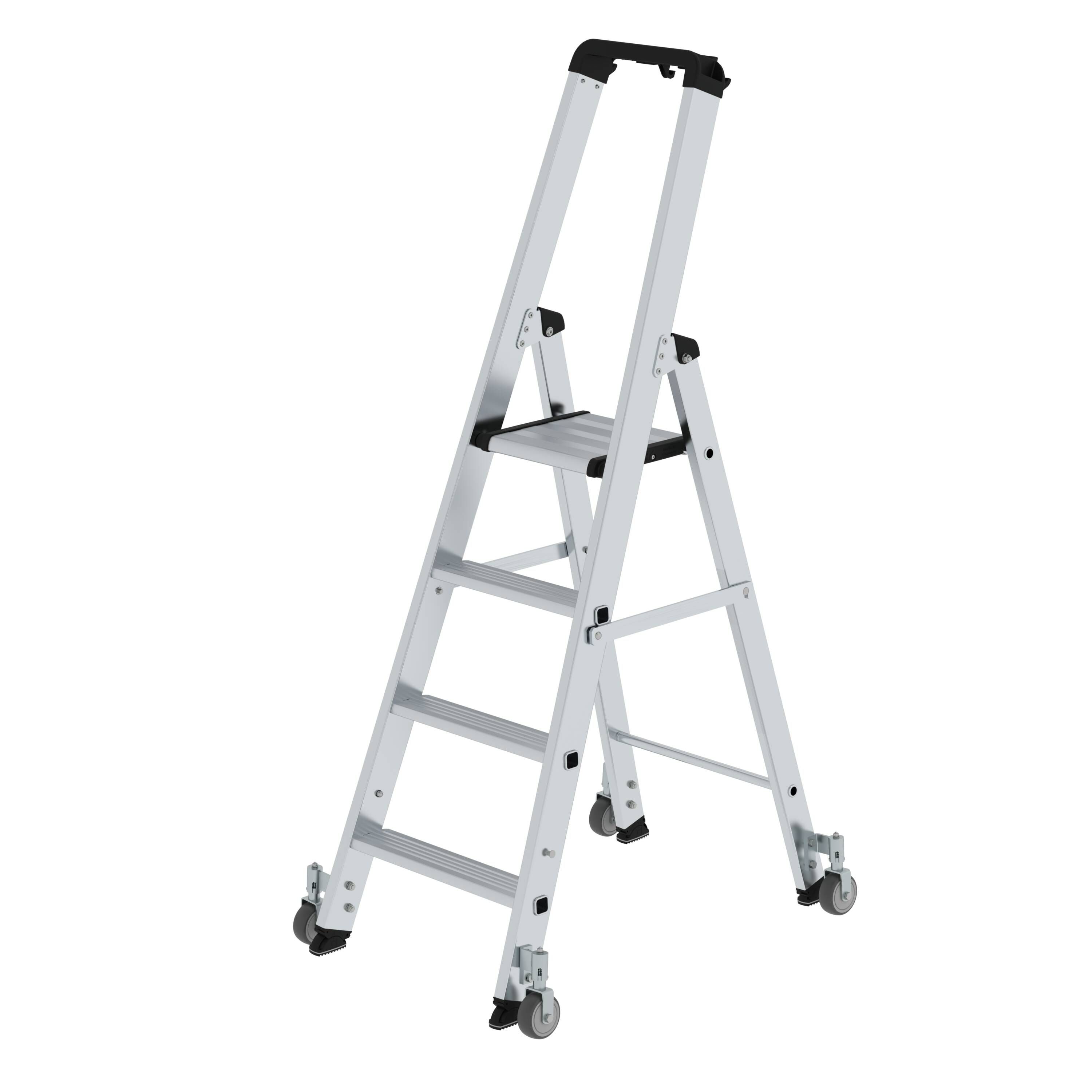 Aluminium-Stehleiter einseitig begehbar mit Rollen