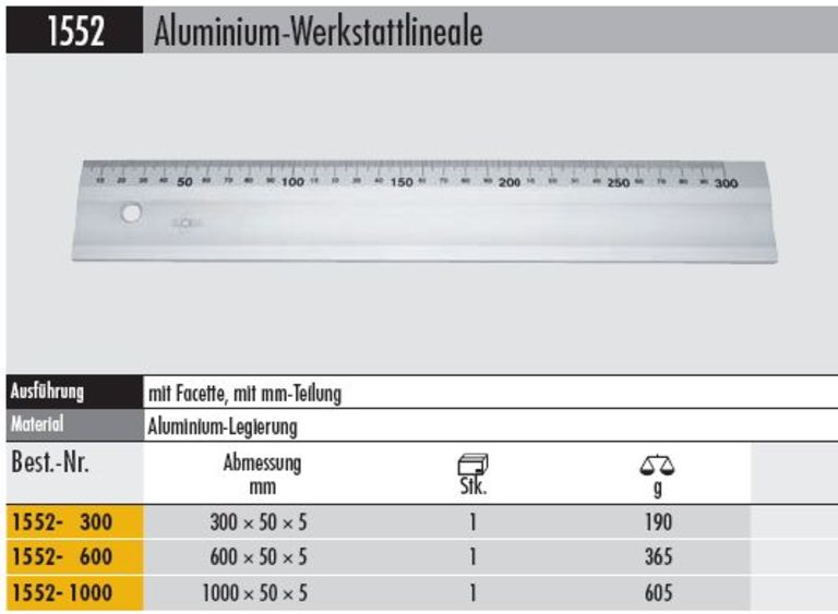 Produktinformationen "Werkstatt - Lineal Alu 1552 - 300 mit mm - Teilung"