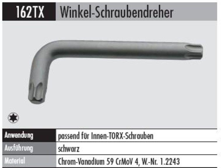 Produktinformationen "Winkelschraubendreher TORX 162 TX-30 für Innen-TORX-Schrauben"
