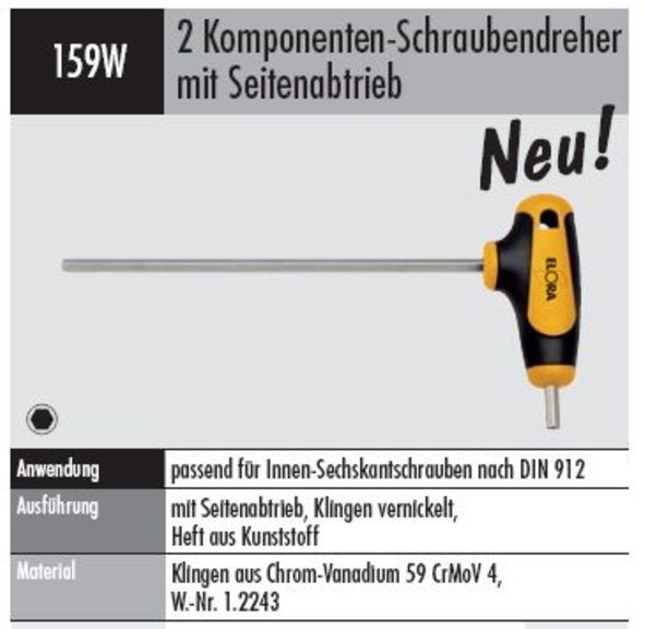Produktinformationen "Zwei Komponenten-Schraubendreher mit Seitenantrieb für Innen-Sechskant-Schrauben"