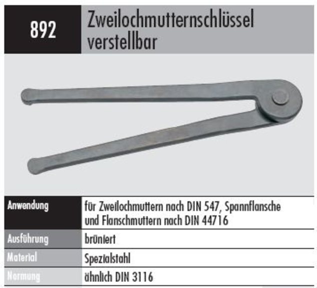 Anwendung: für Zweilochmuttern nach DIN 547, Spannflansche und Flanschmuttern nach DIN 44716