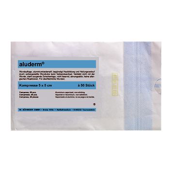 aluderm®-Kompressen. Aluminiumbedampft, Kompressen à 50 St. sind nicht zusätzlich einzeln steril verpackt! aluderm® - die sanfte Wundtherapie. aluderm® mit aluminiumbedampfter Wundauflage ist ideal geeignet für alle oberflächlichen Wunden und Verletzungen, oberflächliche Brandwunden, Schürfwunden, Riss- und Schnittverletzungen. aluderm® ist nicht nur ein Markenname, es ist der Inbegriff für perfekte Wundversorgung. Ob kleine Verletzungen oder größere Oberflächenwunden - aluderm® bringt immer Erleichterung. Medizinisches Fachpersonal und Patienten sind von aluderm® begeistert. Der Erfolg, den aluderm® bei der Anwendung auch in Spezialkliniken hat, bestätigt die Außerordentlichkeit und Qualität dieses Verbandstoffes.
