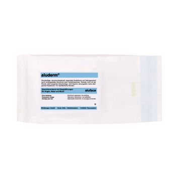 aluderm®-aluface. Gebrauchsfertige aluderm®-Gesichtsmaske zur Abdeckung großflächiger Verletzungen im Gesicht. Mit vorgestanzten Bereichen für Augen, Mund und Nase, das Gesicht wird ganz abgedeckt, die Atemöffnungen bleiben frei. Patientenfreundliche Wundüberwachung und Verbandwechsel, einzeln steril in Peelpackung. aluderm® - die sanfte Wundtherapie. aluderm® mit aluminiumbedampfter Wundauflage ist ideal geeignet für alle oberflächlichen Wunden und Verletzungen, oberflächliche Brandwunden, Schürfwunden, Riss- und Schnittverletzungen. aluderm® ist nicht nur ein Markenname, es ist der Inbegriff für perfekte Wundversorgung. Ob kleine Verletzungen oder größere Oberflächenwunden - aluderm® bringt immer Erleichterung. Medizinisches Fachpersonal und Patienten sind von aluderm® begeistert. Der Erfolg, den aluderm® bei der Anwendung auch in Spezialkliniken hat, bestätigt die Außerordentlichkeit und Qualität dieses Verbandstoffes.