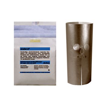 aluderm® ist ein außerordentlich weicher und geschmeidiger Verbandstoff: aluminiumbedampfte Wundauflage aus Polyestervlies, sehr starke Sauglage (Saugfähigkeit 1.400 g/m2) und hydrophobierte PP-Abschlusslage. aluderm® hat viele gute Eigenschaften: aluderm® verklebt nicht mit der Wunde, fasert nicht, ist stark saugend, atmungsaktiv, hypoallergen, kann bei der Hautbildung und Heilung helfen, physiologisch unbedenklich, ohne optischen Aufheller und frei von chemischen Bindemitteln.