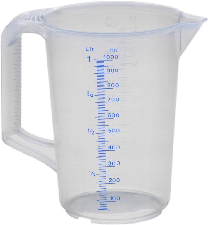 Produktinformationen "hünersdorff Messbecher 1,0l, PP, 2 Skalen mit offenem Griff, transparent"